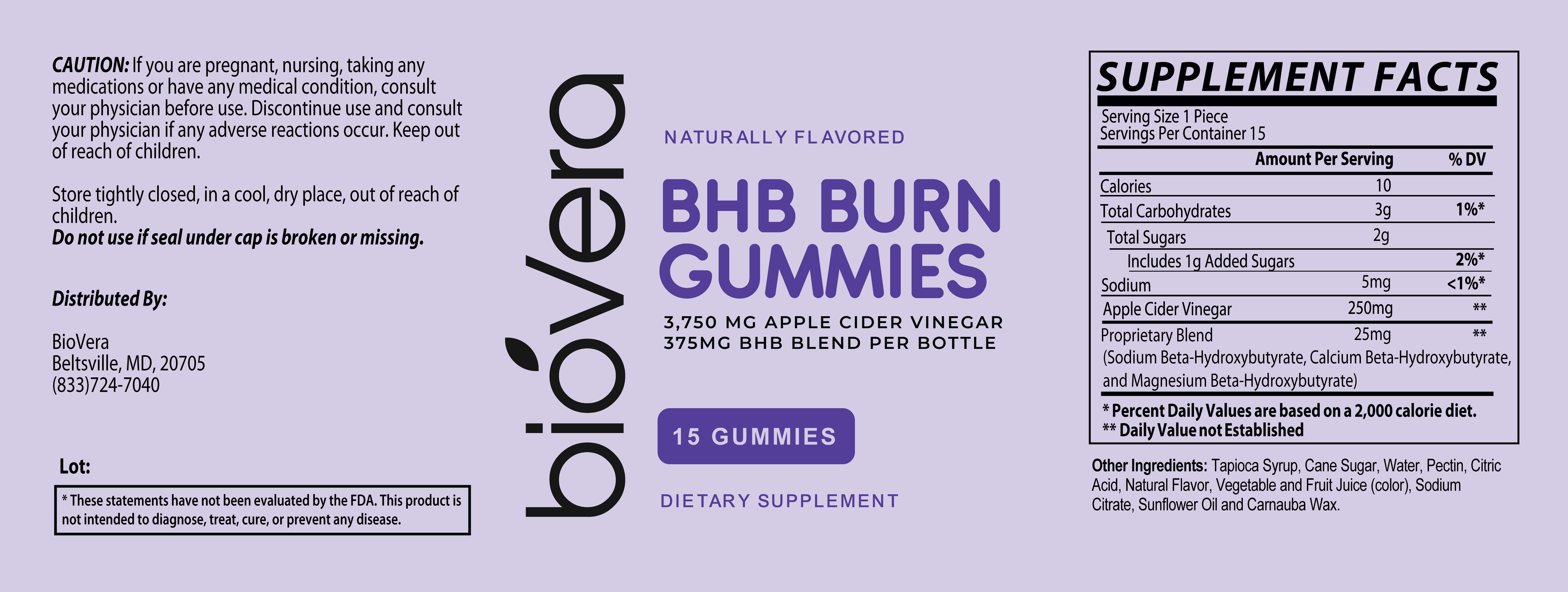 BHB Burn Gummies – 15 Count. Tasty gummies with BHB and apple cider vinegar to fit easily into your daily routine. Take your daily routine up a notch with BHB Burn Gummies. Each bottle delivers 3750mg Apple Cider Vinegar and 375mg BHB Blend in a convenient, chewable gummy form. These gummies are designed to be an easy addition to your day, helping adults stay consistent with their wellness habits.